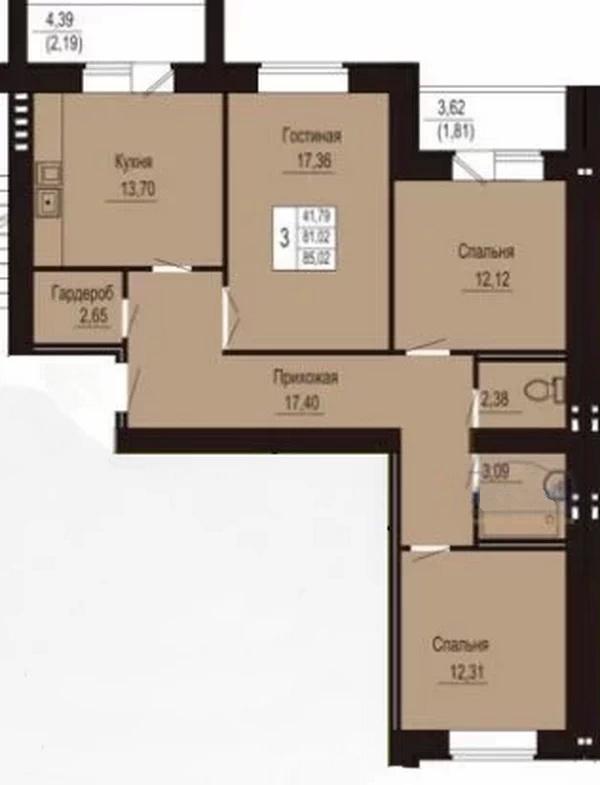ВНИМАНИЕ! Квартир осталось мало! Предлагается к продаже от застройщика 3-х комнатная квартира (85,02/41,79/13,7) во втором корпусе в ЖК "Яблоневый сад" .