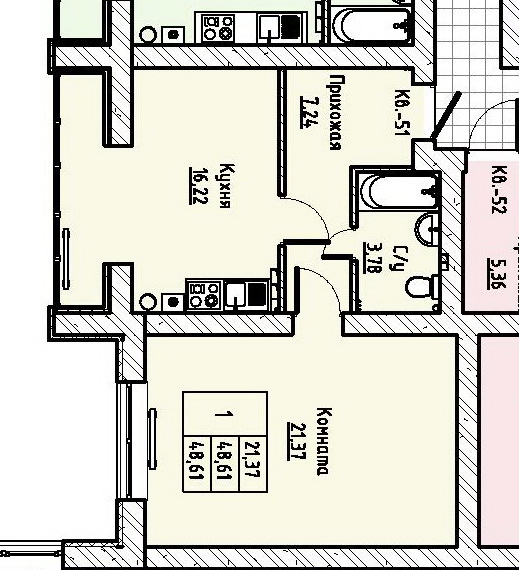 | Жилая площадь | 21.37 |