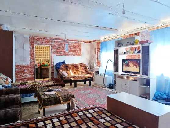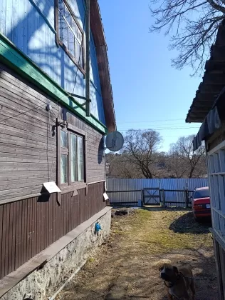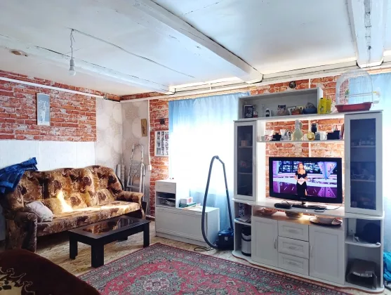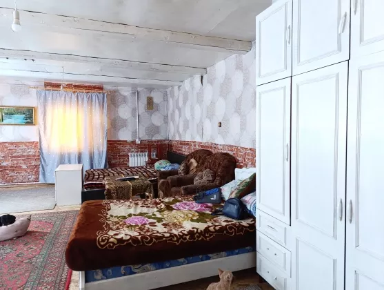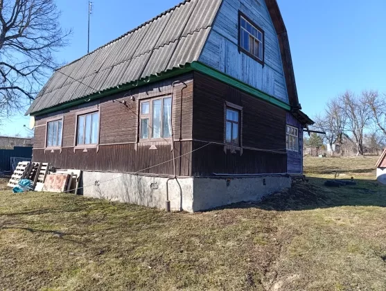 Жилой дом, общей площадью 52 кв. м. построен из бревна, обшит вагонкой. Фундамент – ленточный, высокий. Крыша – шифер.
