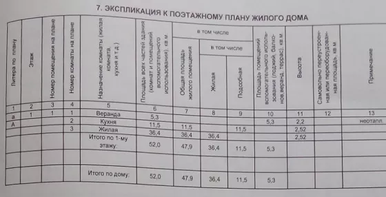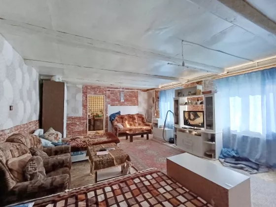 Холодная веранда 5,3 кв.м., кухня-столовая - 11,5 кв.м., жилая комната - 36,4 кв.м. Туалет и летний душ уличный, на участке. Есть возможность оборудовать сан. узел в доме.