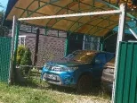 Есть въездные ворота с навесом для двух автомобилей. Стоянка для авто отсыпана щебнем.