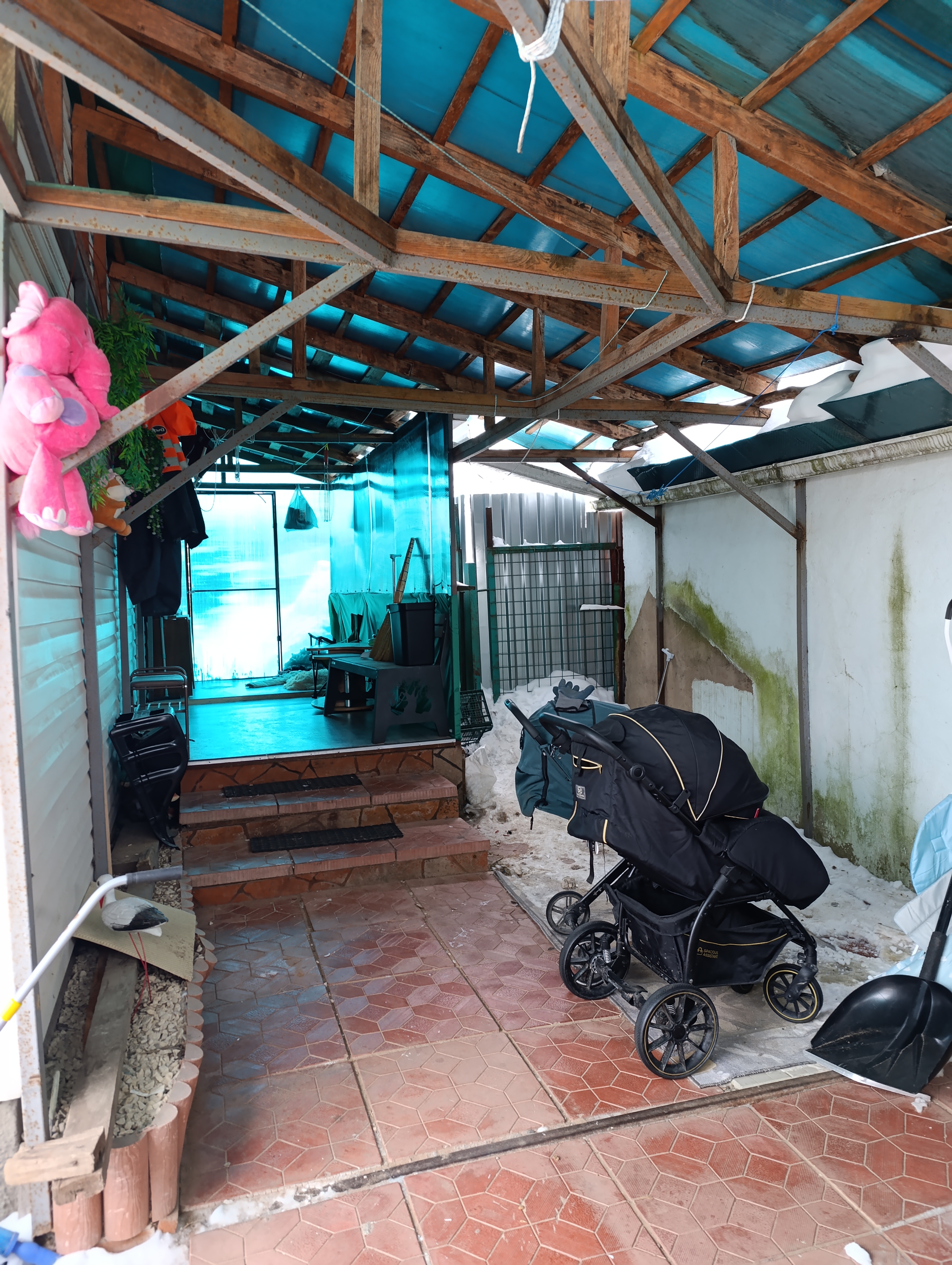 К дому пристроен капитальный утепленный Гараж на одно машиноместо плюс ещё одно машиноместо под навесом за вторыми воротами.