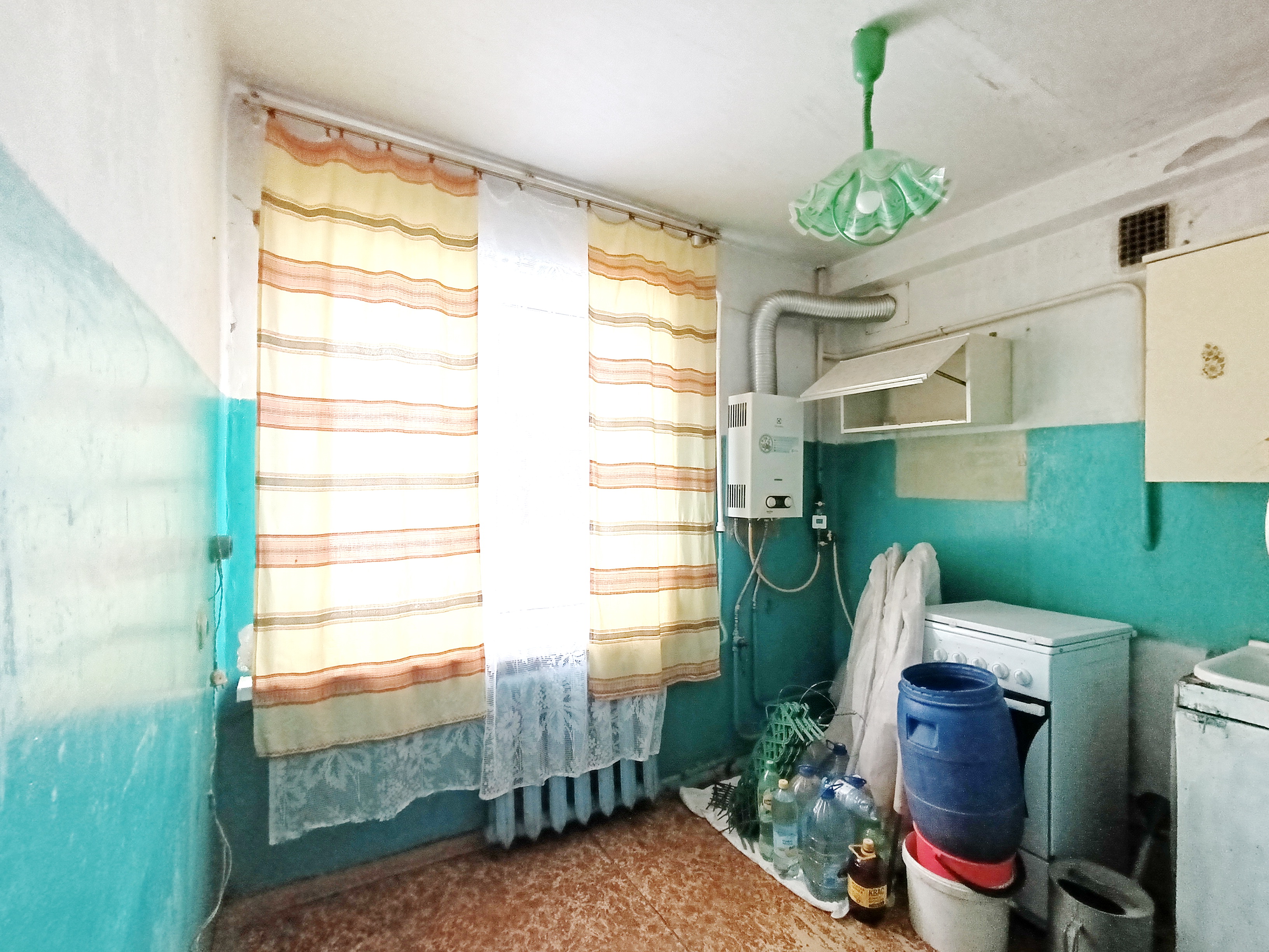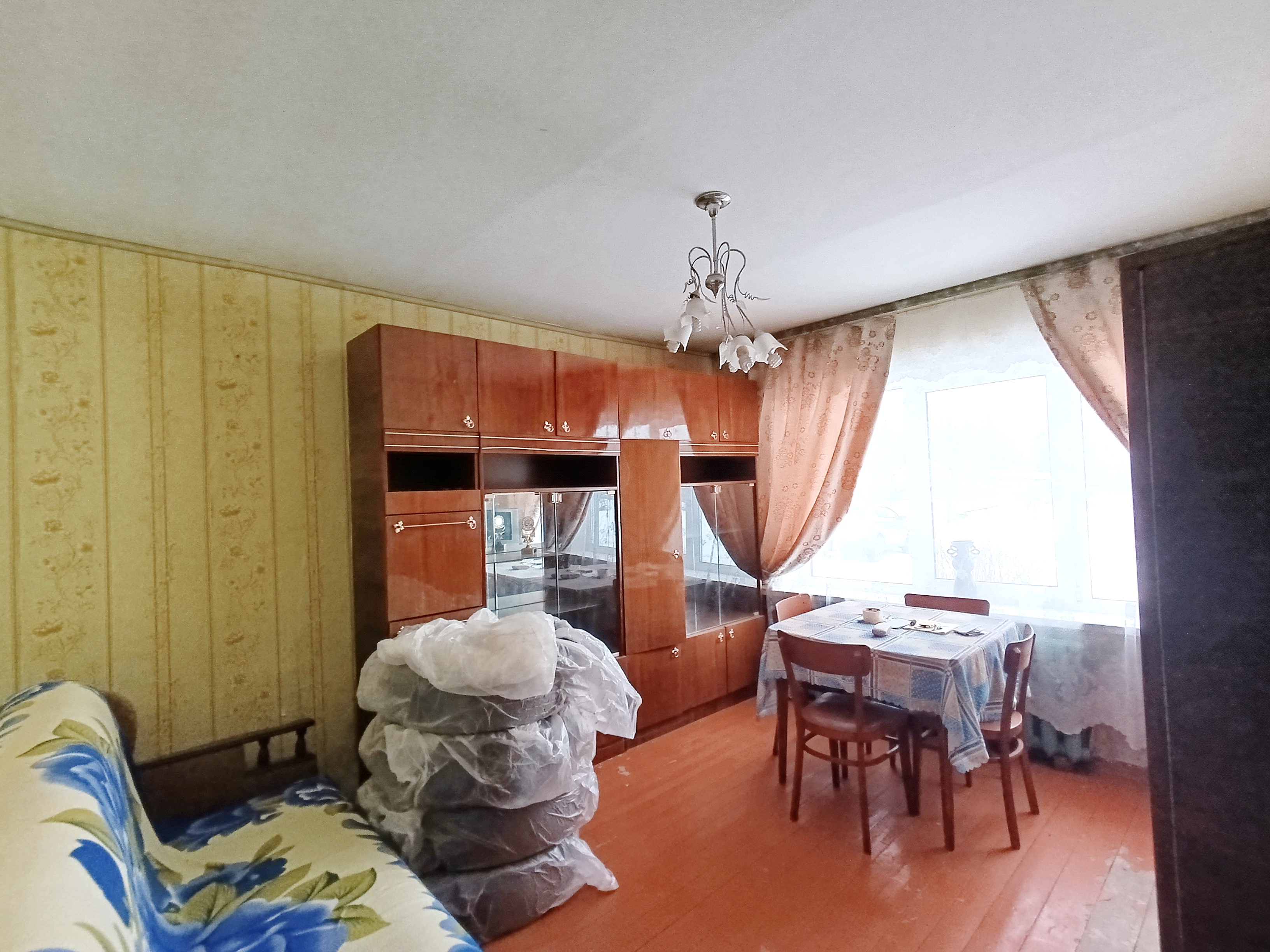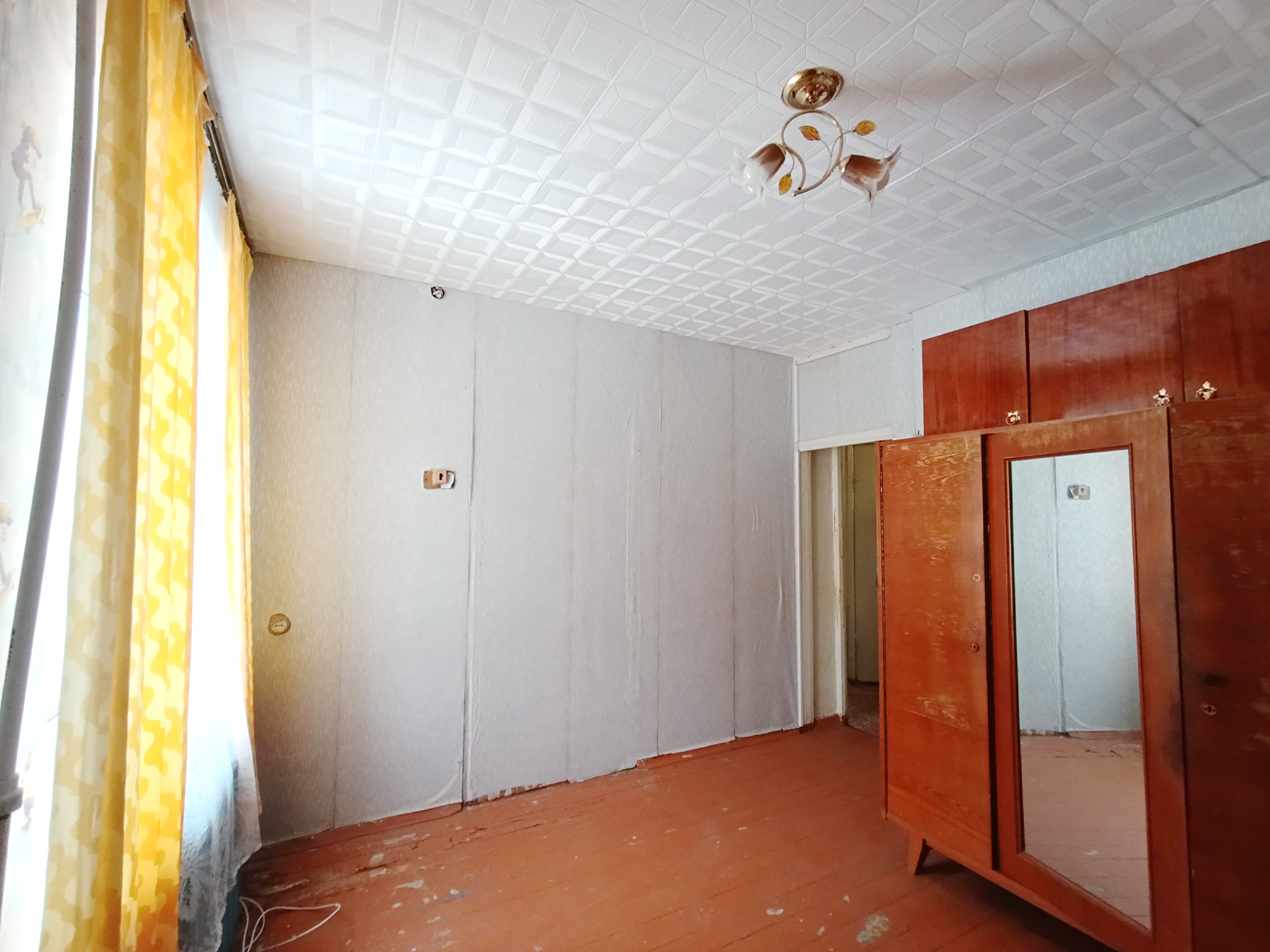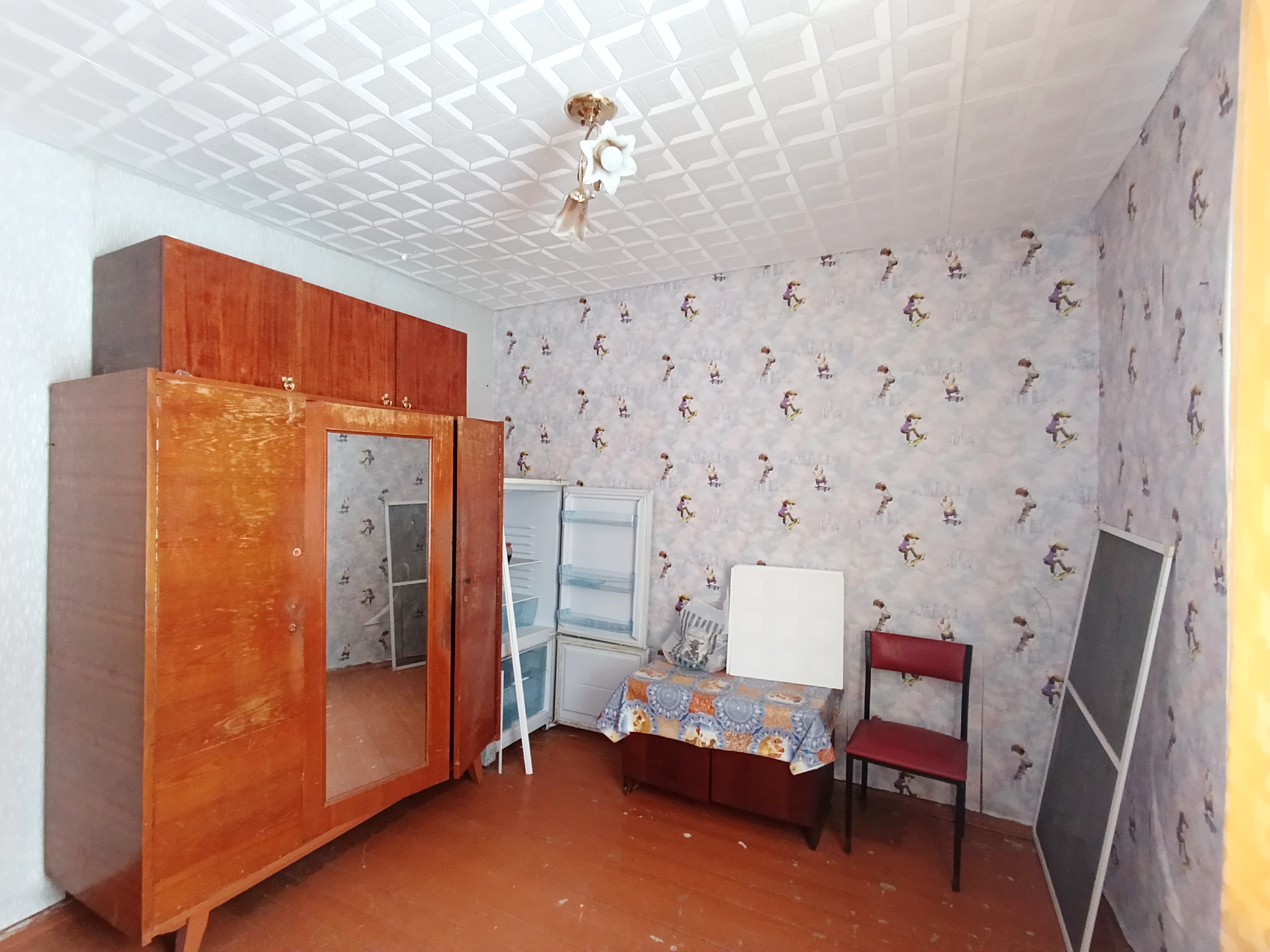 Общ. пл. 36,7 м², жилая – 23,4 м², кухня – 5,8 м², комната - 9,8 м², комната – 13,6 м² с/у совмещён. Квартира теплая, светлая. Пластиковые окна. Состояние квартиры среднее. К квартире прилагается кладовка, расположенная в подвале дома. Возле дома есть небольшой разработанный земельный участок.